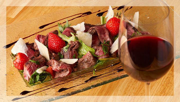 記念日のディナーには、ワインを合わせるコースが人気です。